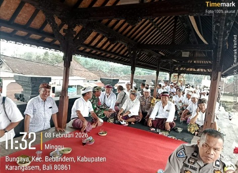 Sebagai wujud kedekatan Polri dengan tokoh adat serta dukungan terhadap kelestarian budaya, jajaran Polsek Bebandem menghadiri rapat Samuan Agung Karya Usaba Sri Desa Bungaya yang berlangsung khidmat di Pura Bale Agung Desa Bungaya, Minggu (8/2/2026).