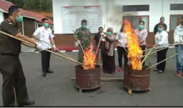 Untuk pemusnaan barang bukti dilakukan bersama sama oleh Kepala Kejaksaan Negeri Humbang Hasundutan , Pabung 0210/TU Mayor Arh Ojak Simarmata, Porkominda, Depag Kabupaten Humbanghasundutan.