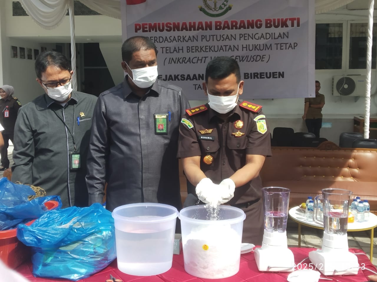 Kejaksaan Negeri (Kejari) Bireuen menggelar pemusnahan Barang Bukti / Sitaan yang berasal dari tindak pidana umum NARKOTIKA, tindak pidana umum terhadap Orang Dan Harta Benda (OHARDA), tindak pidana umum terhadap Keamanan Negara dan Ketertiban Umum (KAMNEGTIBUM) dan barang bukti/sitaan yang berasal dari Tindak Pidana Umum Lainnya (TPUL).