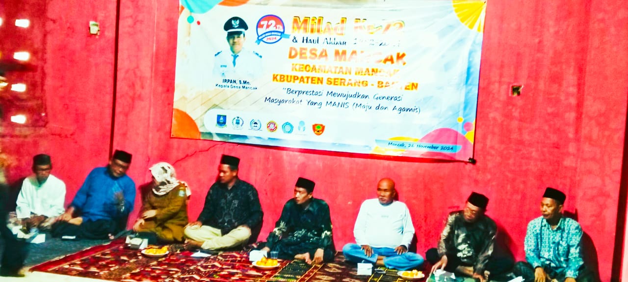 Kades IRPAN mengadakan tasyakuran untuk merayakan milad ke-72 tahun, sekaligus Hol Akbar untuk kepala desa yang sudah wafat di aula kantor desa Mancak pada Selasa 26 November 2024, kecamatan Mancak kabupaten serang Banten.