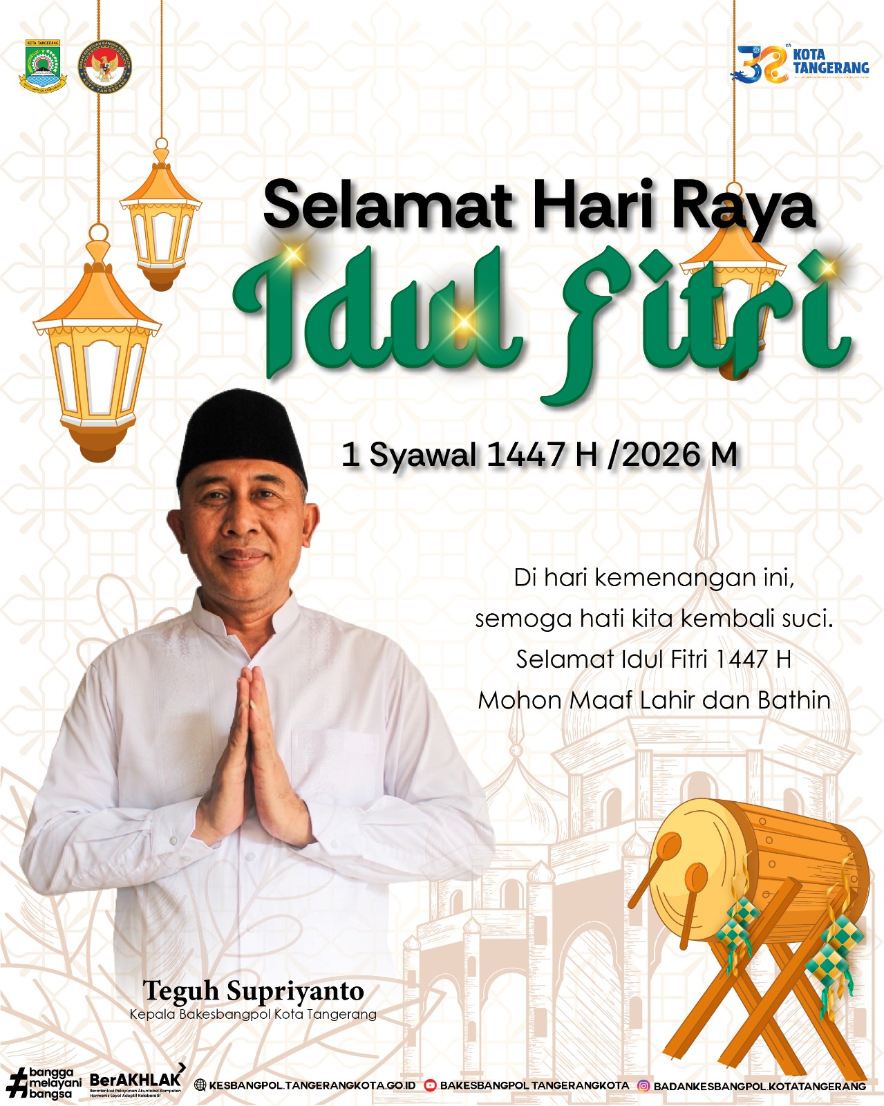 Tangerang ll 1Fakta.com ll Di momen Idul Fitri ini , saya Teguh Supriyanto dengan kerendahan hati , mengucapkan Selamat hari raya idul Fitri 1 Syawal 1447 Hijriyah / 2026 M, kepada seluruh aparat pemerintahan , TNI , Polri dan seluruh masyarakat Indonesia .
