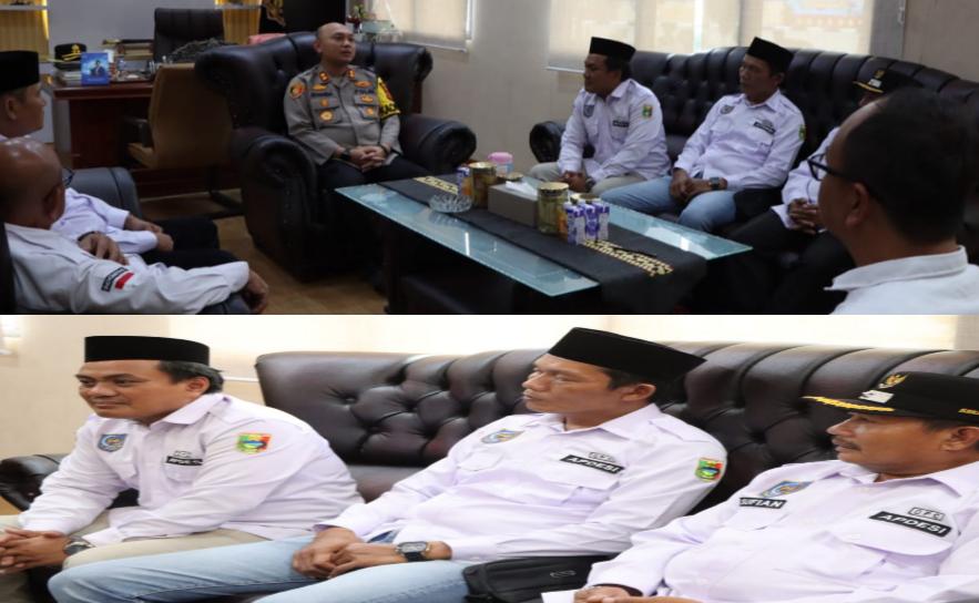 Jajaran Dewan Pimpinan Cabang (DPC) Asosiasi Pemerintah Desa Seluruh Indonesia (Apdesi) Kabupaten Tanggamus menggelar audiensi dengan Kapolres Tanggamus, AKBP Rivanda di ruang kerjanya pada Senin 24 Maret 2025.
