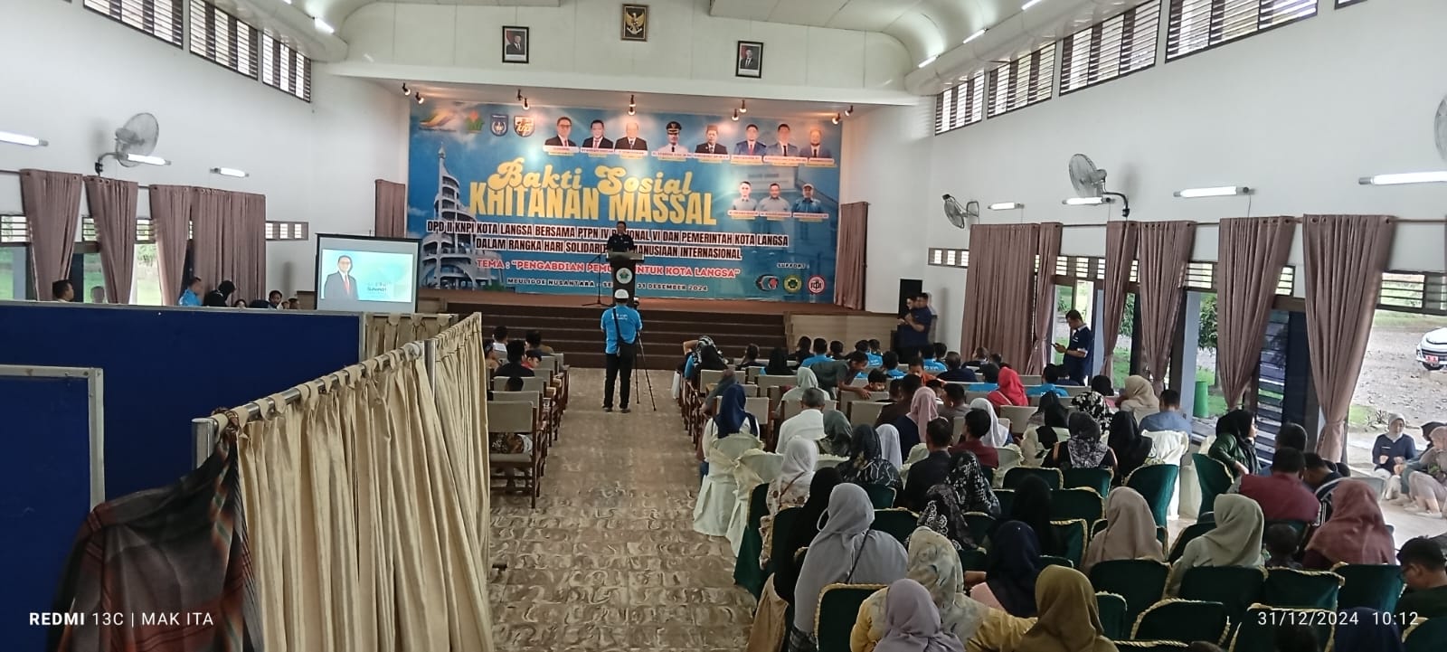 Dewan Pengurus Daerah (DPD) II Komite Nasional Pemuda Indonesia (KNPI) Kota Langsa kolaborasi bersama PTPN IV Regional 6 KSO dan Pemko Kota Langsa menggelar bakti sosial khitanan massal terhadap 52 anak – anak Kota Langsa dalam rangka hari solidaritas kemanusian Internasional yang mengusung tema “Pengabdian Pemuda Untuk Kota Langsa”, di Aula, Meuligoe Nusantara PTPN IV Regional 6, Selasa, 31 Desember 2024.