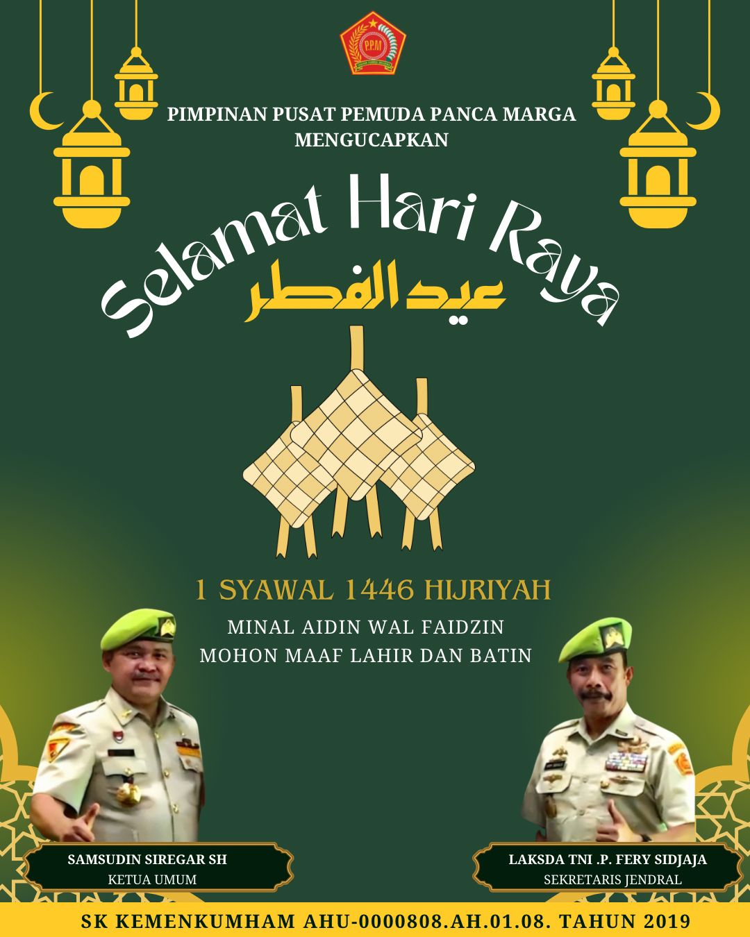 Ketua Umum Pimpinan Pusat Pemuda Panca Marga (KETUM PP PPM). Beserta Seluruh Jajarannya Mengucapkan: Selamat Hari Raya Idul Fitri 1 Syawal 1446 H Tahun 2025 M