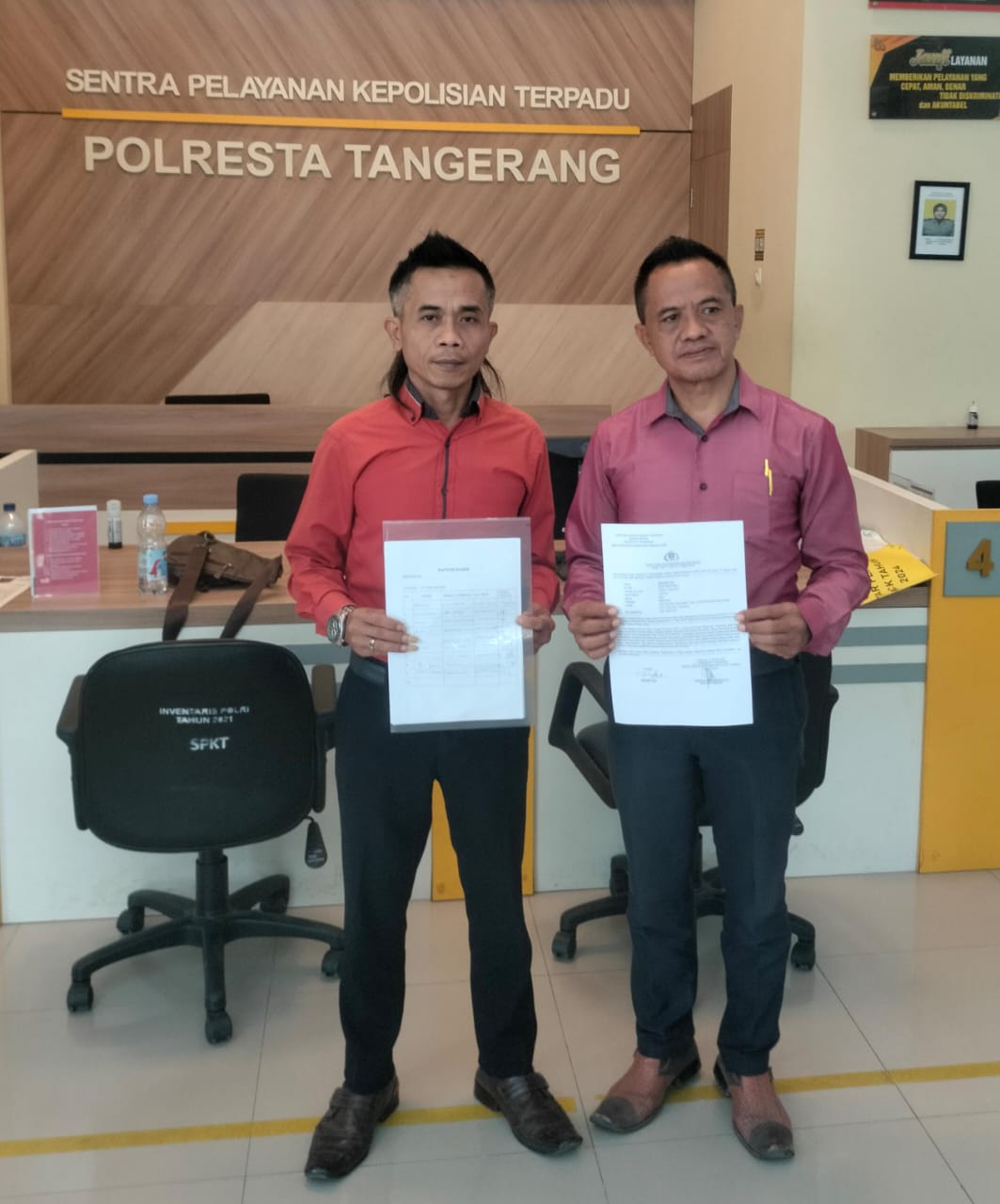 Heru dan dahlan datang ke polresta tangerang melaporkan kades pasanggrahan dan laporan tersebut diterima oleh petugas polresta tangerang dan akan di tindak lanjuti