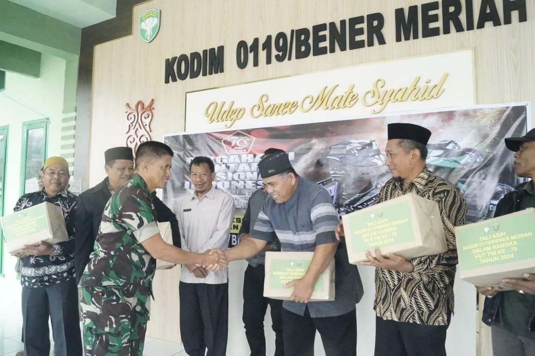 Dalam rangka menyambut Dirgahayu ke 79 HUT TNI, Kodim 0119/BM gelar Bakti Sosial, Bazar UMKM dan Makan Gratis bertempat di Lapangan Makodim 0119/BM Jl. Jalur Dua Desa Wonosobo, Kecamatan Wih Pesam, Kabupaten Bener Meriah, Minggu (22/09/2024).