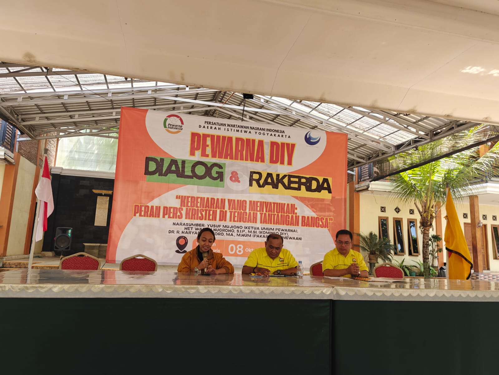Sleman,1Fakta.com ll 8 Oktober 2025 — Dalam momentum bersejarah yang sarat dengan semangat juang dan tekad baja, Persatuan Wartawan Nasrani (PEWARNA) Pengurus Daerah Daerah Istimewa Yogyakarta (DIY) menggelar Konferensi Daerah Luar Biasa (Konferdalub) di Yayasan Indocharis, Sleman. Dengan tema “Kebenaran yang Menyatukan; Peran Pers Kristen di Tengah Tantangan Bangsa”, acara ini menjadi panggung strategis untuk mengobarkan kembali semangat perjuangan pers Kristen dalam menghadapi derasnya gelombang perubahan dan tantangan zaman.