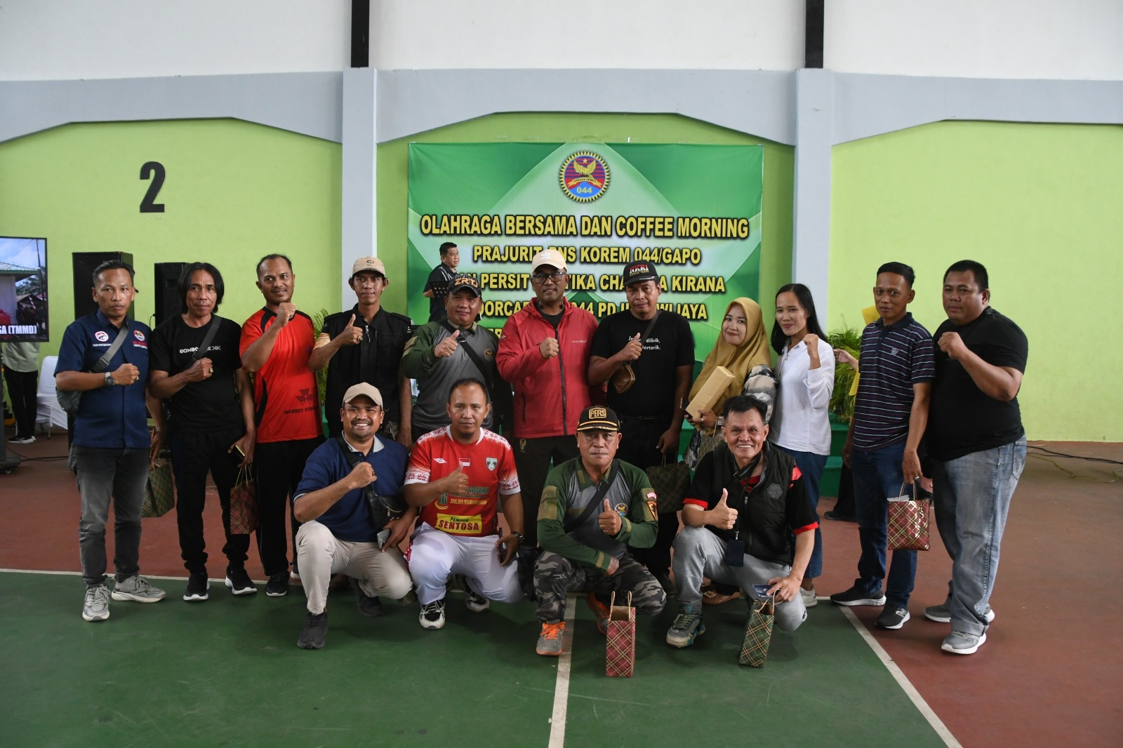 Korem 044/Garuda Dempo menggelar kegiatan Olahraga Bersama dan Coffee Morning yang diikuti oleh Prajurit, PNS, Persit Kartika Chandra Kirana, mitra Korem, serta awak media, sebagai upaya mempererat kebersamaan dan soliditas, bertempat di Makorem 044/Gapo, Kamis (18/12/2025).