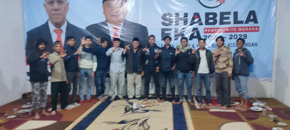 Dukungan terus mengalir untuk calon Bupati dan Wakil Bupati Aceh Tengah Shabela Abu Bakar – Eka Saputra datang dari para Pemuda Bebesen yang siap memenangkan dan mencoblos nomor urut 3.