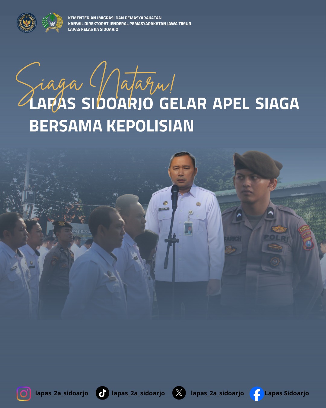 Kegiatan ini diikuti oleh seluruh pejabat struktural dan petugas Lapas Kelas IIA Sidoarjo, serta personel dari Kepolisian setempat. Apel siaga dilaksanakan sebagai bentuk kesiapsiagaan menghadapi potensi gangguan keamanan dan ketertiban selama momentum libur akhir tahun.