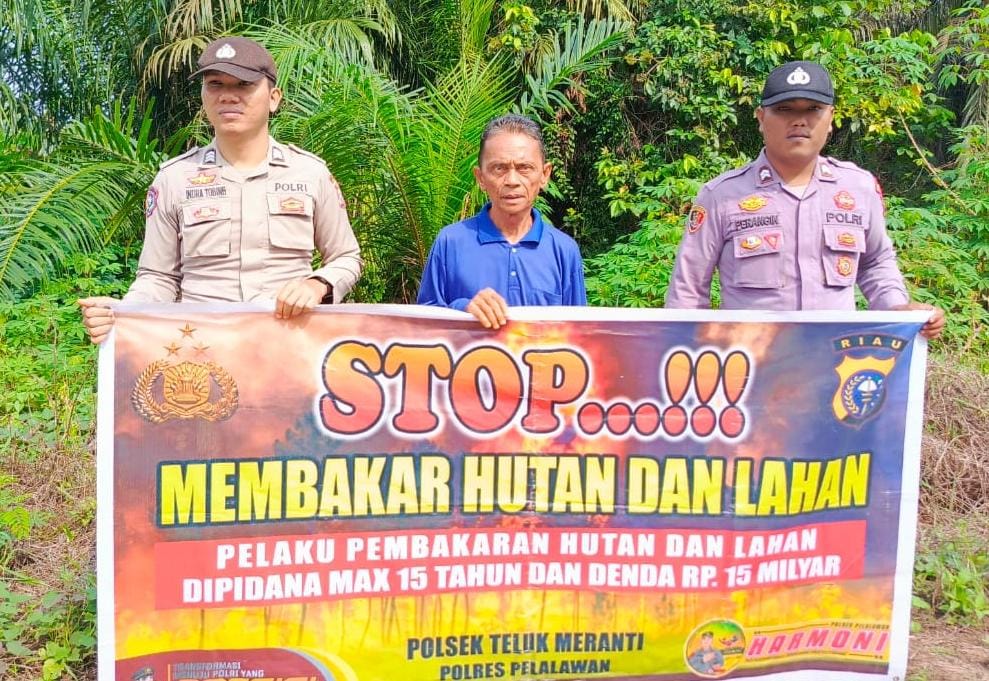 Polsek Teluk Meranti, Polres Pelalawan, melakukan penyebaran Maklumat Kapolda Riau dan memberikan bimbingan serta penyuluhan kepada masyarakat dalam rangka pencegahan kebakaran hutan dan lahan (Karhutla), Jumat siang, 10 Oktober 2025.