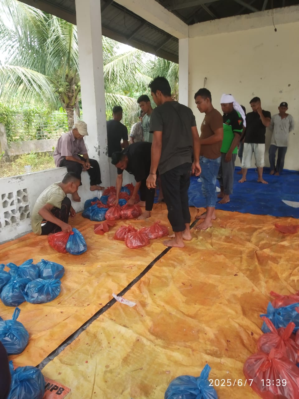 Masyarakat Desa Alue Rambong Kecamatan Juli Kabupaten Bireuen Provinsi Aceh menyembelih 3,ekor lembu 9,Kibas hewan Qurban,Sabtu 7 Juni 2025.