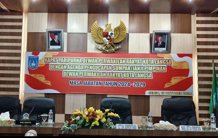 Pimpinan sementara Ketua DPRK Langsa Burhansyah membuka secara resmi rapat paripurna dewan perwakilan rakyat kota Langsa yang beragendakan Pengucapan Sumpah/janji terhadap ketiga Pimpinan Dewan Perwakilan Rakyat Kota Langsa.