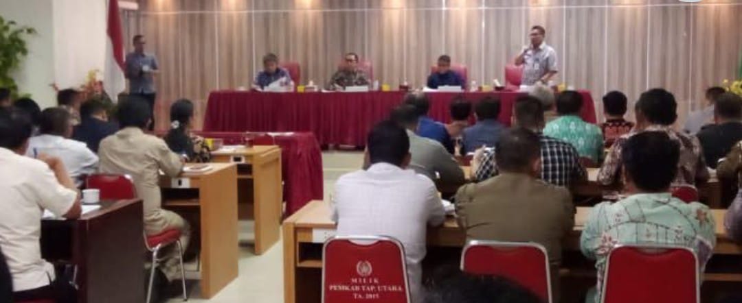 Pejabat Bupati Kabupaten Tapanuli Utara Disposma Sihombing, bersama Pj Sekda David Sipahutar memimpin rapat koordinasi dengan para pimpinan Organisasi Perangkat Daerah (OPD) se-Tapanuli Utara Kamis (6/2/25).