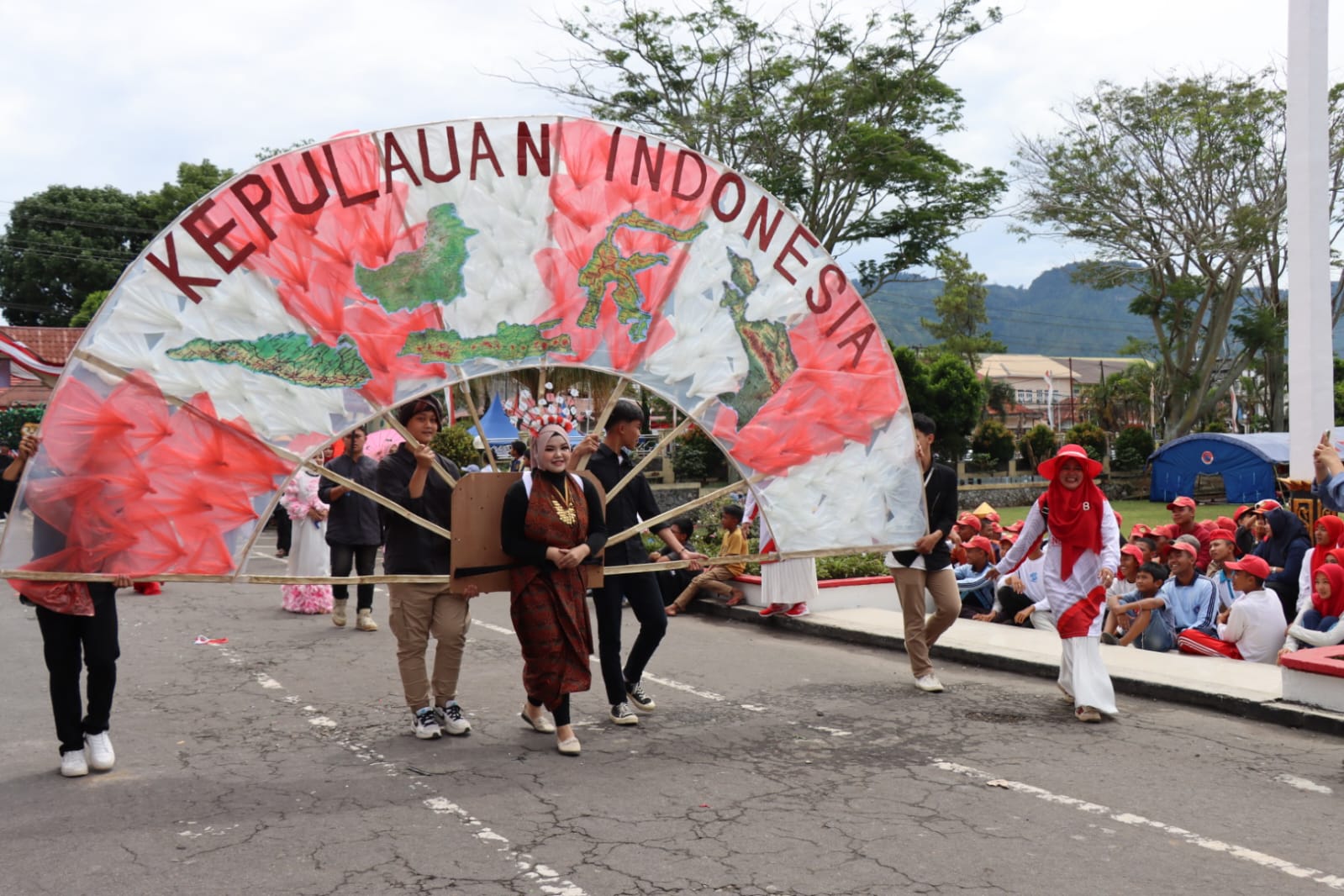 Pawai karnaval tingkat pelajar TK, SD, SMP dan SMA/sederajat se-Kab. Aceh Tengah serta guru sekolah/pendamping dalam menyambut kemerdekaan RI Ke 79 ini, Kapolres Aceh Tengah Akbp Dody Indra Eka Putra,S.I.K,M.H, dan Ketua Bhayangkari Cabang Aceh Tengah Ny. Dian Dody bersama forkopimda turut dampingi Pj. bupati Ir. T. Mirzuan, MT, melepas pawài karnaval budaya nusantara tersebut.