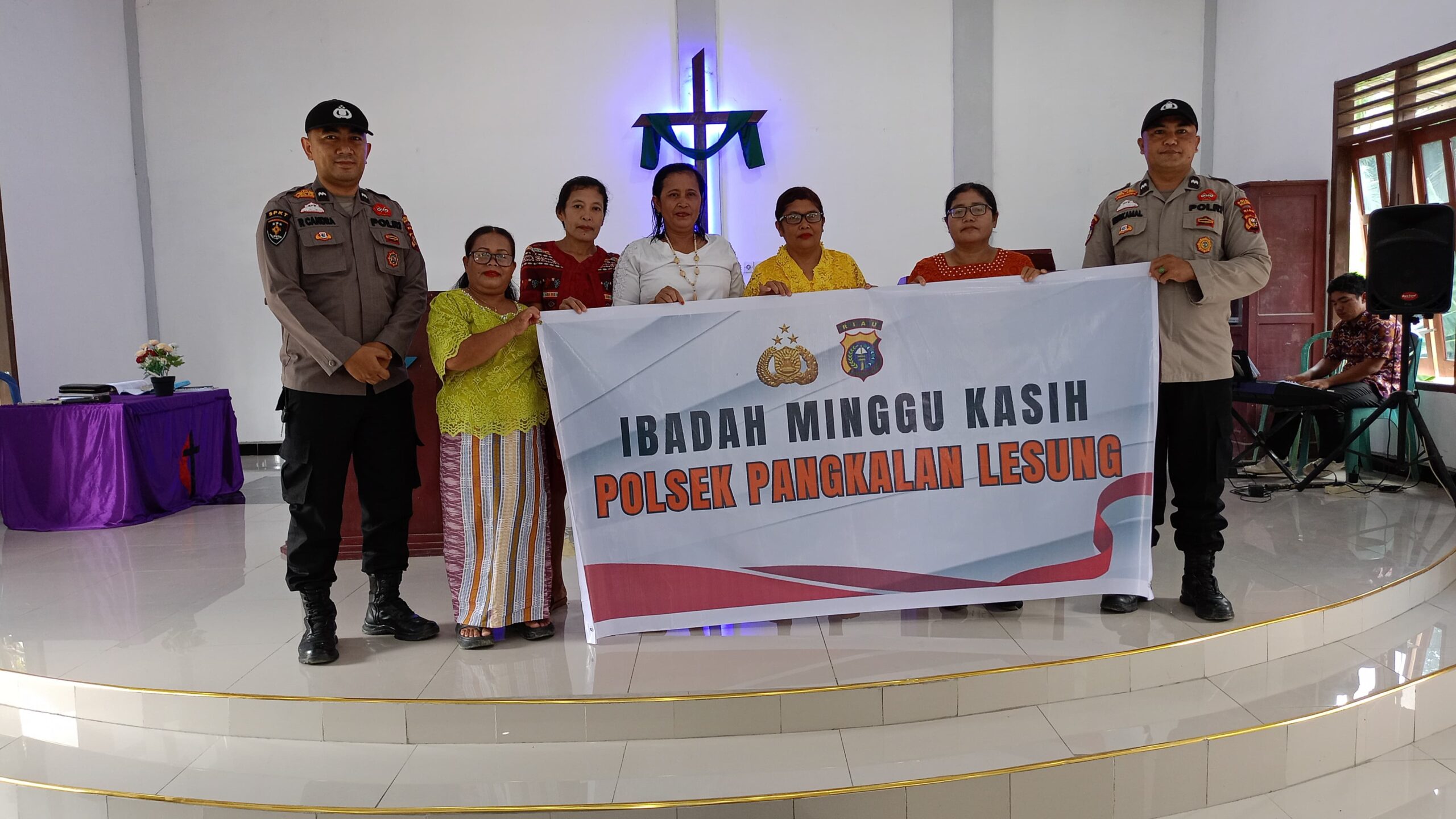 Polsek Pangkalan Lesung hadir dalam Ibadah Minggu Kasih yang digelar di Gereja Methodis Efrat, Km. 40, Kelurahan Pangkalan Lesung, Kecamatan Pangkalan Lesung, Minggu (26/10/2025). Kegiatan ini dipimpin oleh Isok 1 Polsek Pangkalan Lesung, Aipda Roni Candra, bersama anggota lainnya.