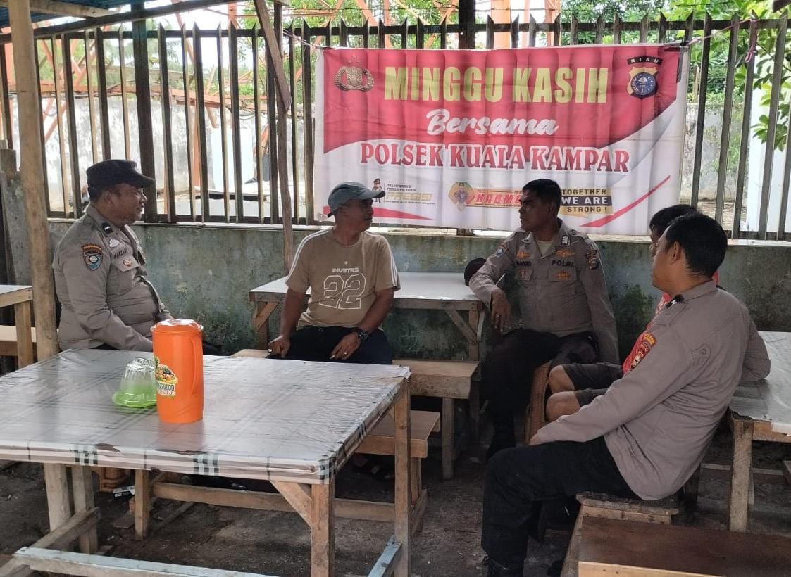 Polsek Kuala Kampar, Polres Pelalawan, melaksanakan kegiatan Minggu Kasih sebagai bagian dari program Quick Wins Kapolri, Minggu, 22 Maret 2026. Kegiatan ini bertujuan mendengar langsung aspirasi masyarakat terkait situasi keamanan dan ketertiban masyarakat (harkamtibmas) serta permasalahan sosial lainnya.