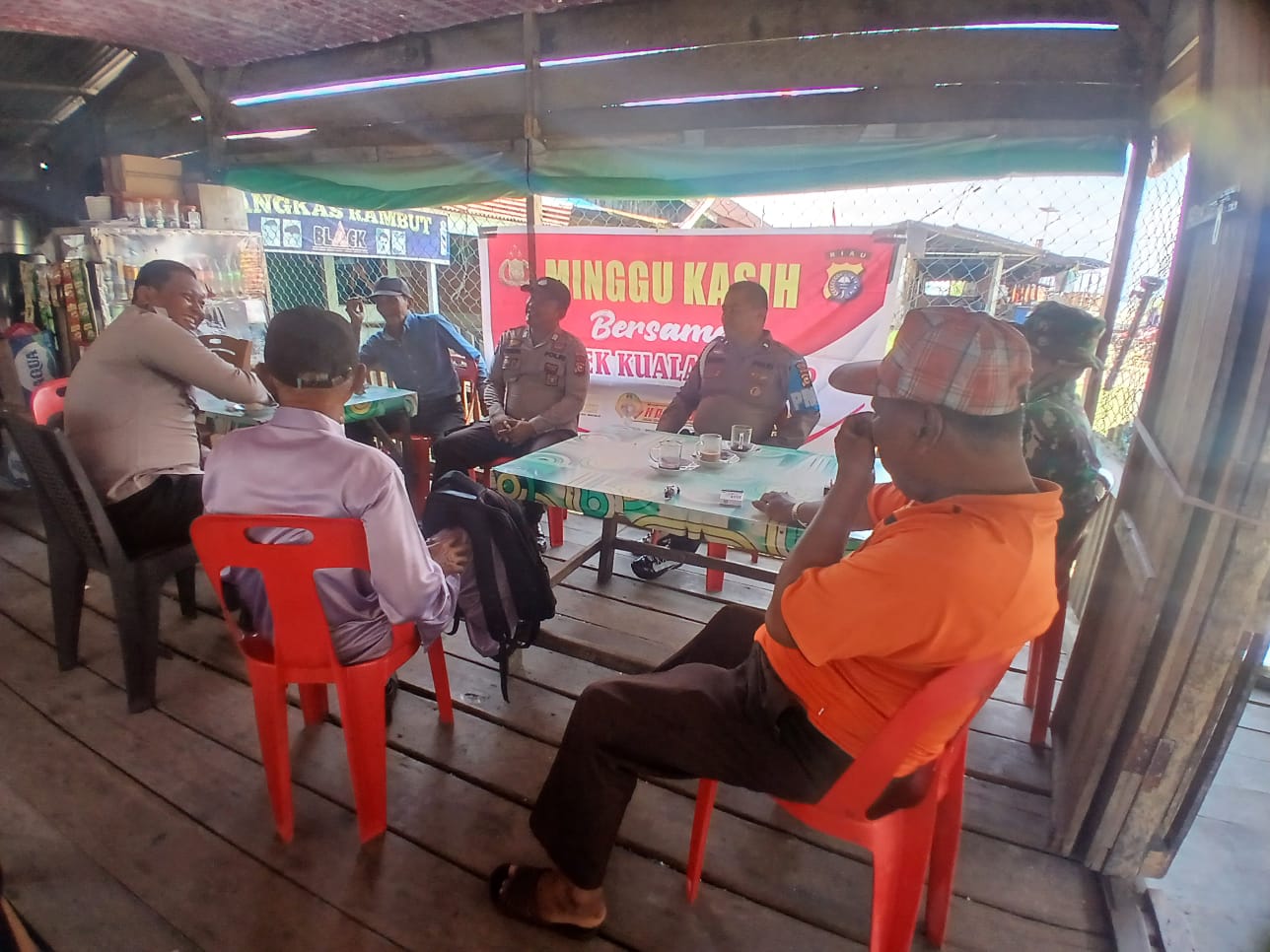 Kepolisian Sektor (Polsek) Kuala Kampar, Polres Pelalawan, melaksanakan kegiatan Minggu Kasih bersama masyarakat, Minggu pagi, 21 September 2025. Bertempat di Warung Pasar Minggu, Kelurahan Teluk Dalam, kegiatan ini digelar sebagai bagian dari Program Quick Wins Kapolri, dengan tujuan menjaring langsung aspirasi dan keluhan warga terkait keamanan dan ketertiban masyarakat (Kamtibmas).
