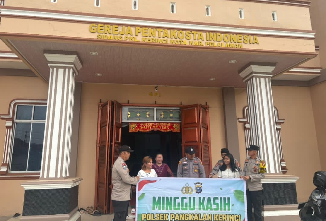 Jajaran Polres Pelalawan melalui Polsek Pangkalan Kerinci melaksanakan kegiatan Minggu Kasih (Minggu Harmoni) bersama jemaat Gereja Pentakosta Indonesia (GPI) di Kelurahan Pangkalan Kerinci Kota, Kecamatan Pangkalan Kerinci, Ahad, 15 Februari 2026. Ibadah berlangsung sejak pukul 09.00 WIB hingga selesai dalam suasana aman dan lancar.