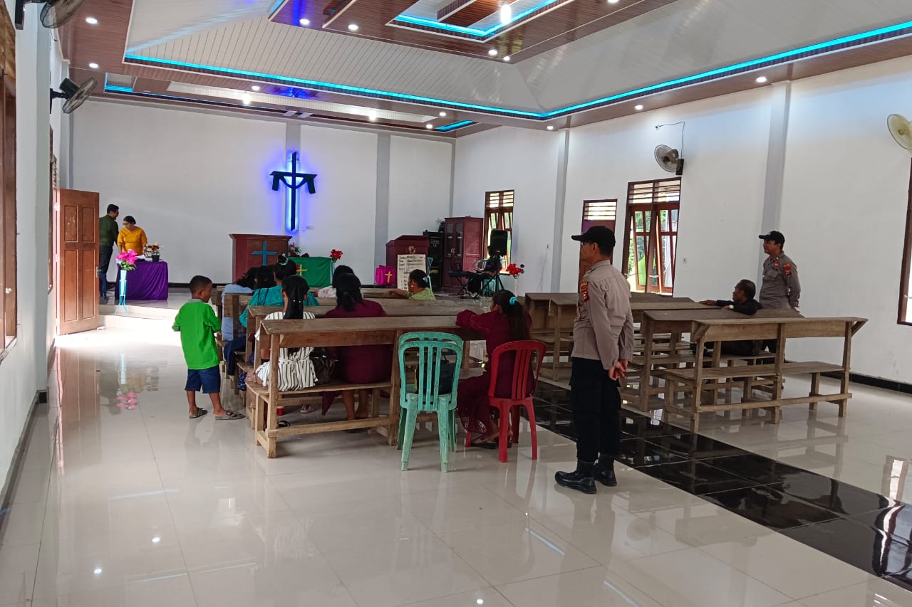 “Pesan kamtibmas disampaikan agar jemaat tetap waspada dan menjaga ketertiban selama kegiatan ibadah,” ujar Aiptu Dedy Junaidi.