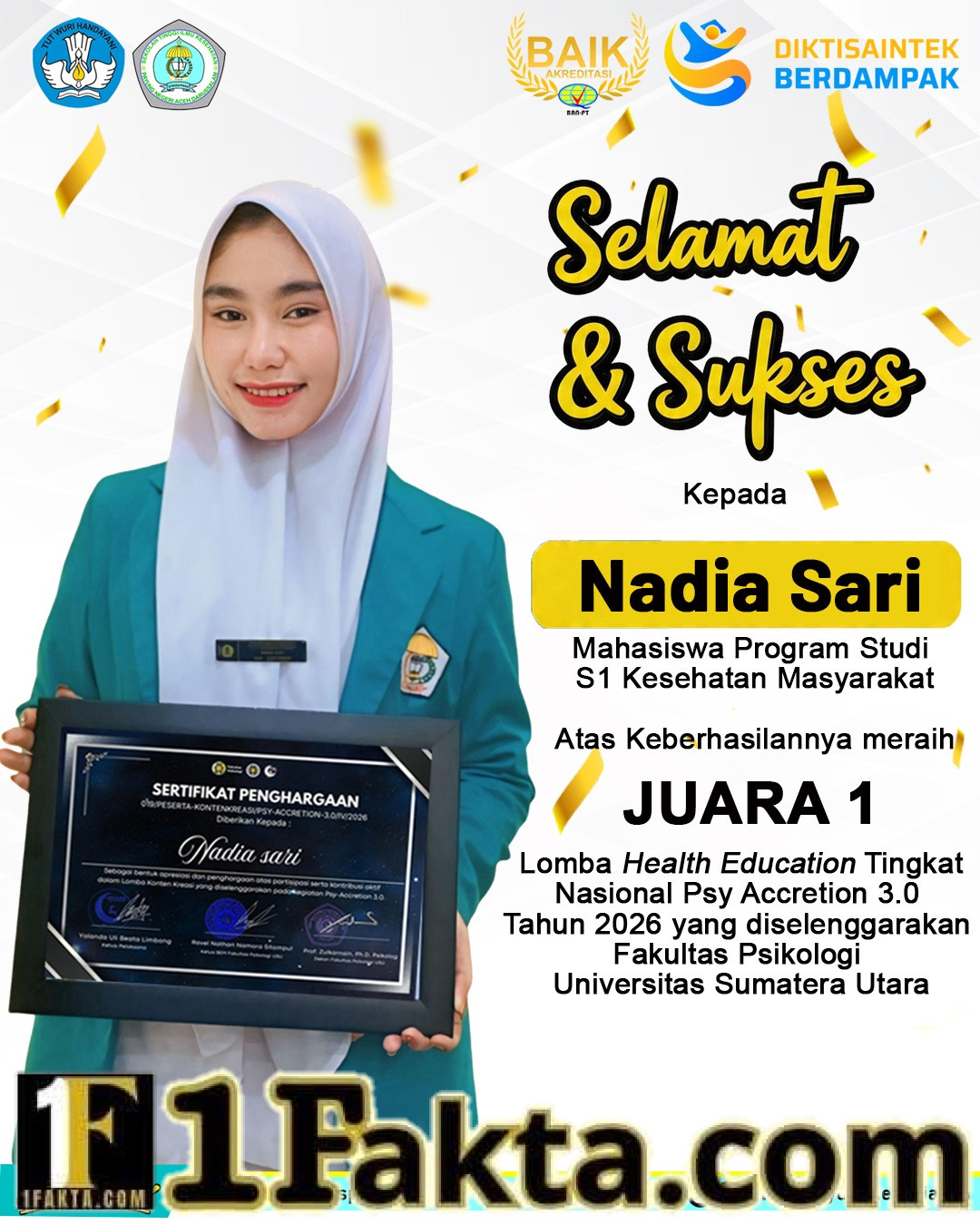Kabar membanggakan datang dari dunia pendidikan kesehatan. Nadia Sari, mahasiswa STIKes Payung Negeri Aceh Darussalam, berhasil meraih juara pertama pada kategori health education (edukasi kesehatan) dalam ajang nasional Psy-Accretion 3.0. Ia juga menjadi satu-satunya perwakilan dari Aceh yang dinobatkan sebagai peserta terbaik di bidang edukasi kesehatan dalam kompetisi tersebut.22 April 2026