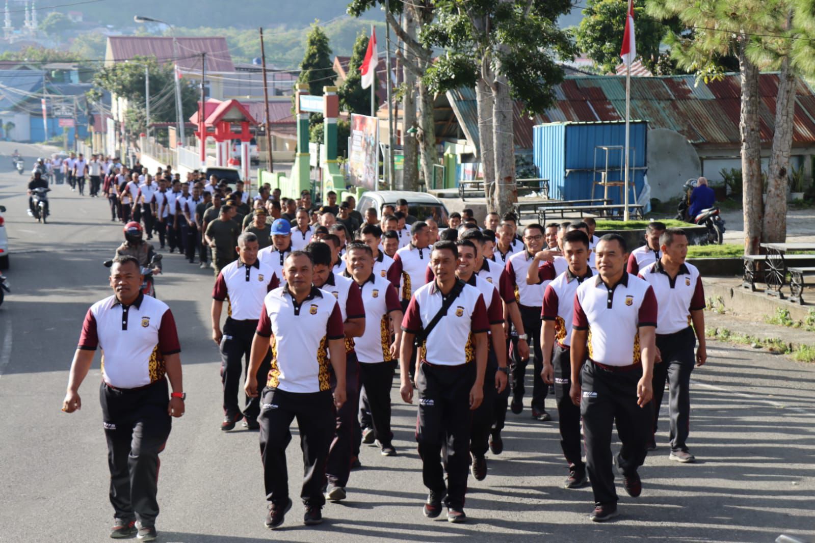 Kegiatan olahraga bersama diawali dengan apel bersama kemudian dilanjutakan dengan Long March dengan rute Polres Aceh Tengah – Simpang 5 – Kodim 0106 Aceh Tengah – Terminal – Simpang Wariji – Finish Polres Aceh Tengah dan melakukan senam bersama dilapangan Mako Polres Aceh Tengah.
