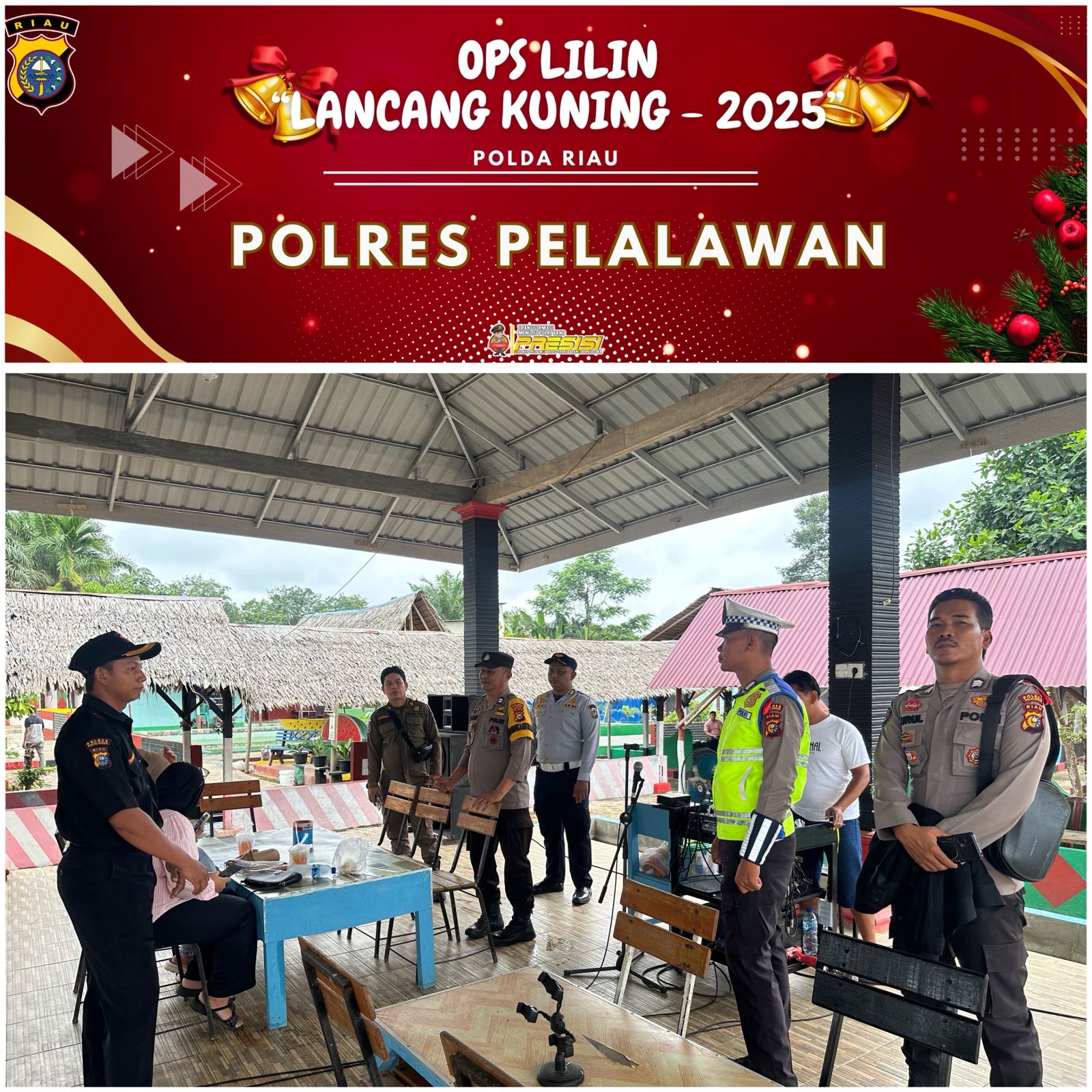 Pos Pengamanan (Pos Pam) Nilam Sari Ukui melaksanakan patroli di objek wisata Kolam Renang Gembiro Ati, Desa Bukit Gajah, Kecamatan Ukui, Kabupaten Pelalawan, Sabtu, 27 Desember 2025. Kegiatan ini merupakan bagian dari Operasi Lilin Lancang Kuning 2025 untuk menciptakan situasi keamanan dan ketertiban masyarakat (kamtibmas) yang aman dan kondusif.