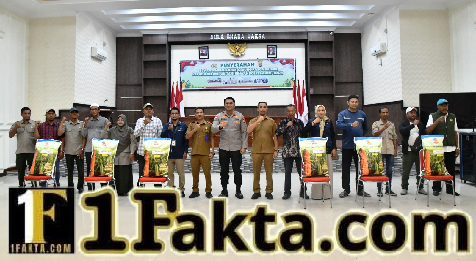Kepolisian Resor Aceh Timur, Polda Aceh menyalurkan bantuan bibit jagung kepada kelompok tani binaan sebagai bagian dari upaya pemulihan sektor pertanian pascabanjir. Bantuan tersebut diserahkan secara simbolis oleh Kapolres Aceh Timur, AKBP Irwan Kurniadi, S.I.K. di Aula Bhara Daksa, Senin (13/04/2026) pagi.