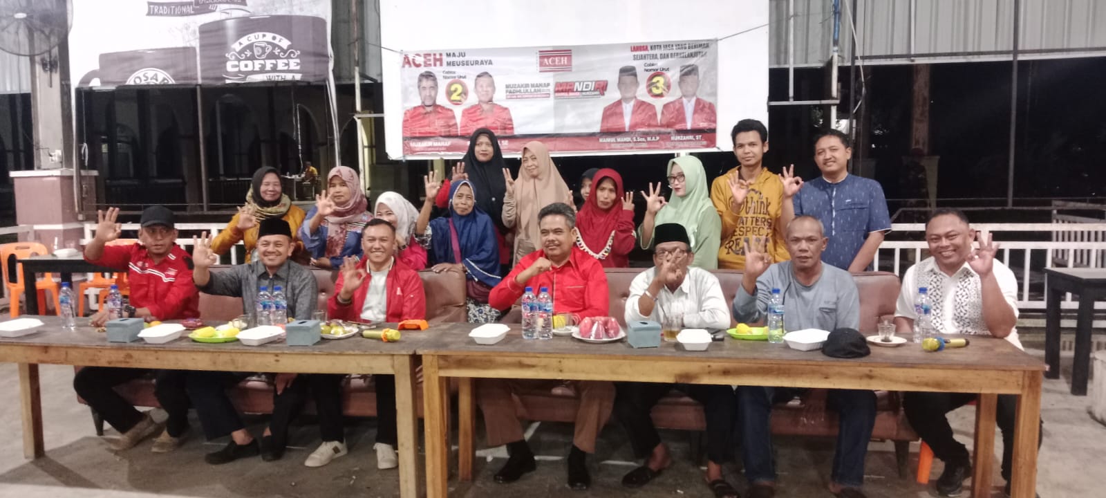 Kunjungan pasangan Calon Walikota dan Wakil Walikota Langsa Nomor urut 03 Maimul Mahdi, S.Sos., M.AP dan Nurzahri, ST ke- Desa (Gampong) Pondok. Pabrik Kecamatan Langsa Lama Kota Langsa dan sekitarnya disambut hangat oleh warga setempat, Sabtu malam (02/11/2024) di- Cosar Coffee Gampong setempat.