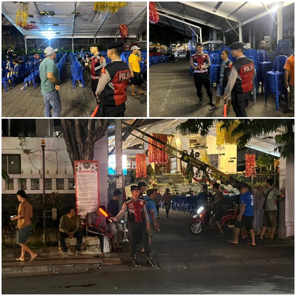 Dipimpin oleh Padal IPDA I Made Karjana, petugas melakukan pengaturan arus lalu lintas di sekitar area gereja yang terpantau ramai namun tetap mengalir lancar. Selain pengaturan jalan, personel juga melakukan patroli jalan kaki di lingkar luar gereja guna memastikan tidak ada gangguan kamtibmas selama rangkaian ibadah berlangsung.