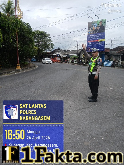 Guna memastikan lalu lintas berjalan lancar dan aman, Personil Turjawali dari Kepolisian Resor Karangasem kembali menunjukkan kepedulian terhadap keselamatan masyarakat. Sore ini, mereka terlihat sigap membantu warga menyeberangi Jalan Achmad Yani yang padat. Pada Minggu, 26 April 2026.