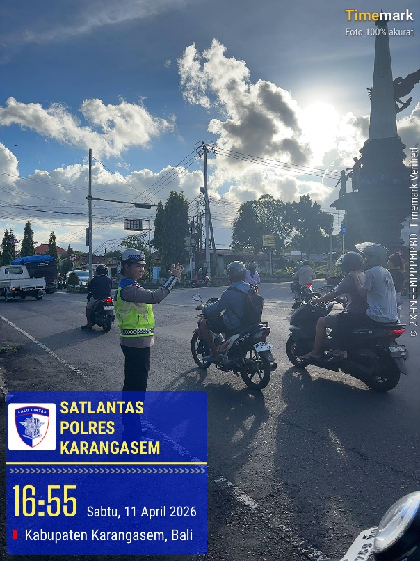 Dalam upaya tetap menjaga dan menciptakan kelancaran arus lalu lintas di seputaran Ktl 2 simpang tiga Kodim personil satuan Lalu Lintas Polres Karangasem melaksanakan pemantauan, pengaturan dan penjagaan dipos Ktl 2 simpang tiga Kodim. Pada Sabtu, 11 April 2026 pukul 17.00 Wita.