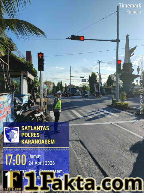 Dalam upaya memastikan menjaga dan menciptakan kelancaran arus lalu lintas di seputaran Ktl 2 simpang tiga Kodim personil satuan Lalu Lintas Polres Karangasem melaksanakan pemantauan, pengaturan dan penjagaan dipos Ktl 2 simpang tiga Kodim. Pada hari Jum’at, 24 April 2026 pukul 17.00 Wita.