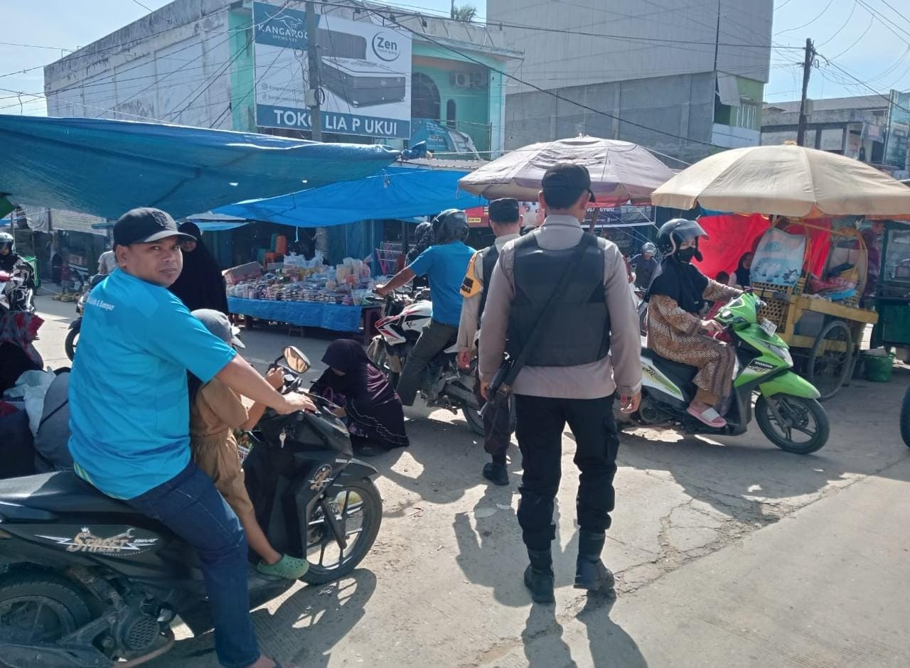 Personel Polsek Ukui kembali melaksanakan patroli rutin di Pasar Baru Ukui, Jalan Lintas Timur, pada Minggu (10/8/2025) pagi. Kegiatan ini dilakukan oleh Piket Jaga Regu II mulai pukul 09.15 WIB, dengan fokus menciptakan suasana aman, tertib, dan nyaman bagi masyarakat yang beraktivitas di pasar.
