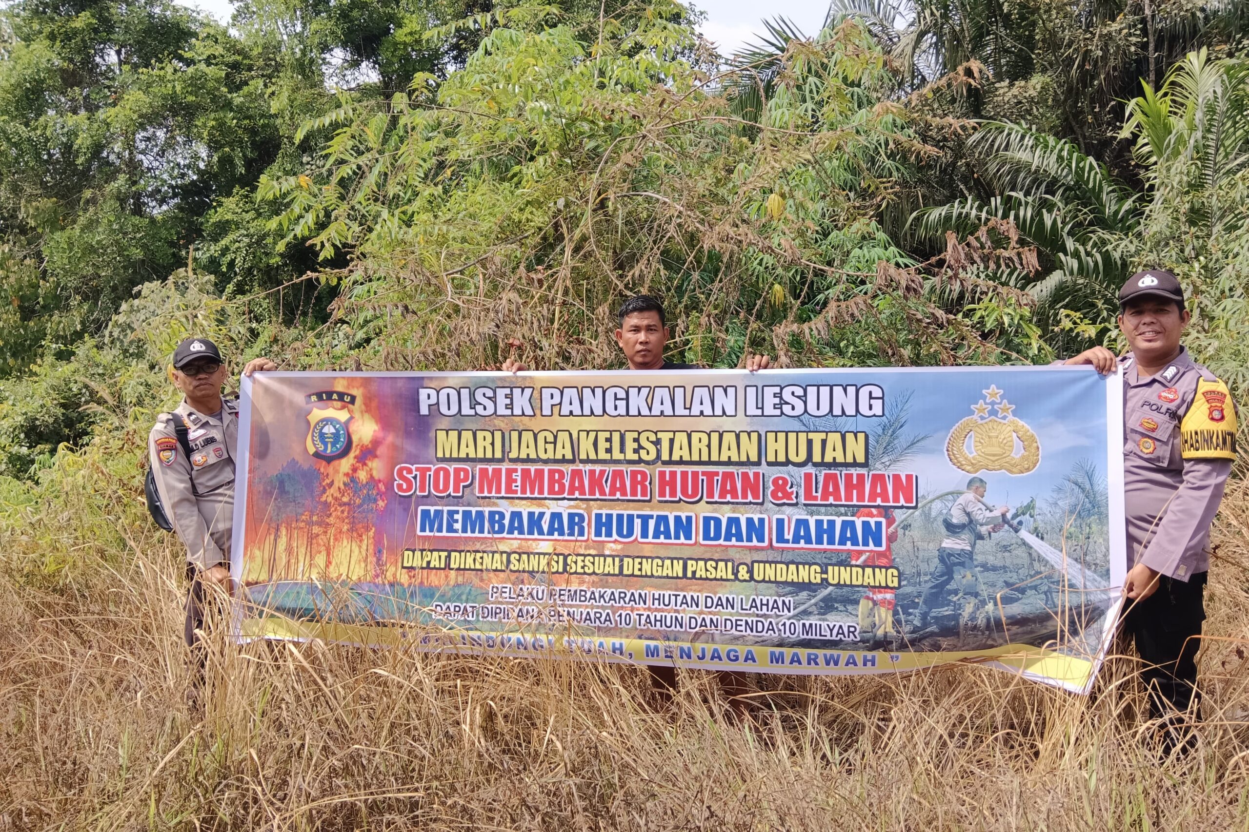 “Kita ingatkan masyarakat tentang bahaya membakar hutan dan lahan, baik dari sisi hukum maupun dampak lingkungan,” ujar Kapolsek Pangkalan Lesung, AKP Lambok Hendriko, SH.