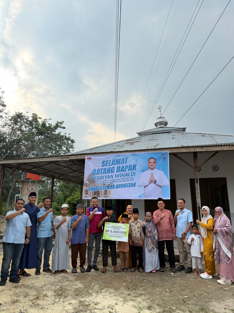 Kepedulian terhadap pendidikan keagamaan kembali ditunjukkan oleh Pebriyan Winaldi, Direktur PT Green Palma Riau Jaya sekaligus Ketua Elang 3 Hambalang Riau. Ia menyalurkan bantuan renovasi madrasah di Dusun Kampung Panjang, Desa Koto Perambahan, Kecamatan Kampa, Kabupaten Kampar, dengan total bantuan sebesar Rp10 juta.