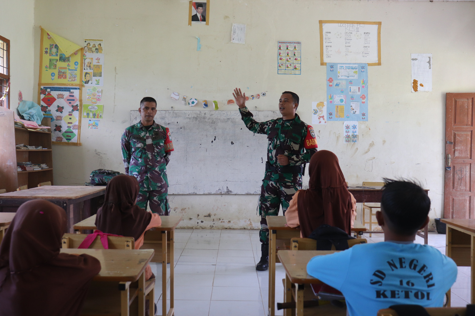 Serda Sukurdi menyampaikan Melalui program TNI peduli pendidikan Babinsa menyambangi Sekolah Dasar guna memberikan pelajaran,kehadiran babinsa di sekolah SD Negri tersebut disambut gembira oleh para siswa, kegiatan seperti ini salah satu bagian dari tugas Babinsa kepada warga dan para siswa yang berada di wilayah binaannya.ujarnya.