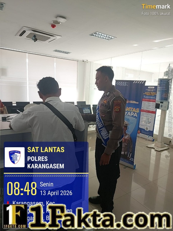 Personil Unit Regident Satuan Lalu Lintas Polres Karangasem memberikan layanan dengan senyum ramah santun dan salam kepada masyarakat khususnya masyarakat yang akan memperpanjang SIM atau mengajukan Permohonan SIM Baru. Pada Senin, 13 April 2026.