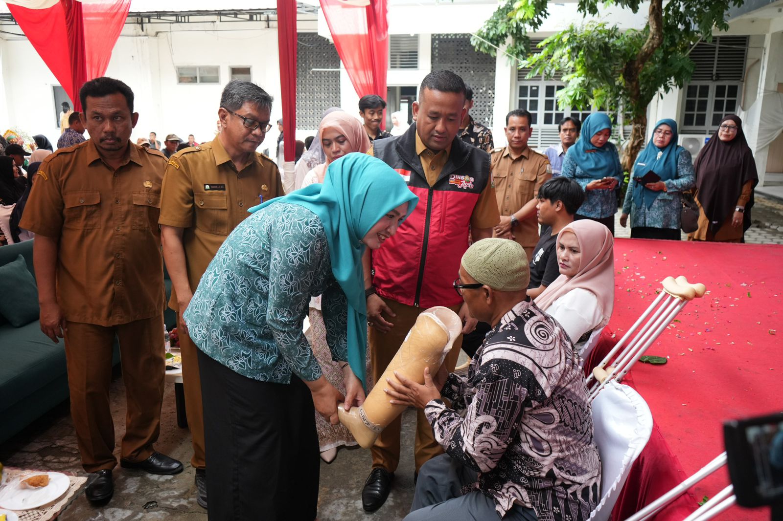 Dalam kegiatan tersebut, dilakukan penyerahan bantuan kaki palsu yang langsung dipasangkan di lokasi kegiatan. Penyerahan bantuan ini didampingi Ketua TP PKK Aceh, Marlina Muzakir, bersama Pelaksana Tugas (Plt.) Kepala Dinas Sosial Aceh. Sebanyak 98 orang menerima manfaat bantuan kaki palsu.