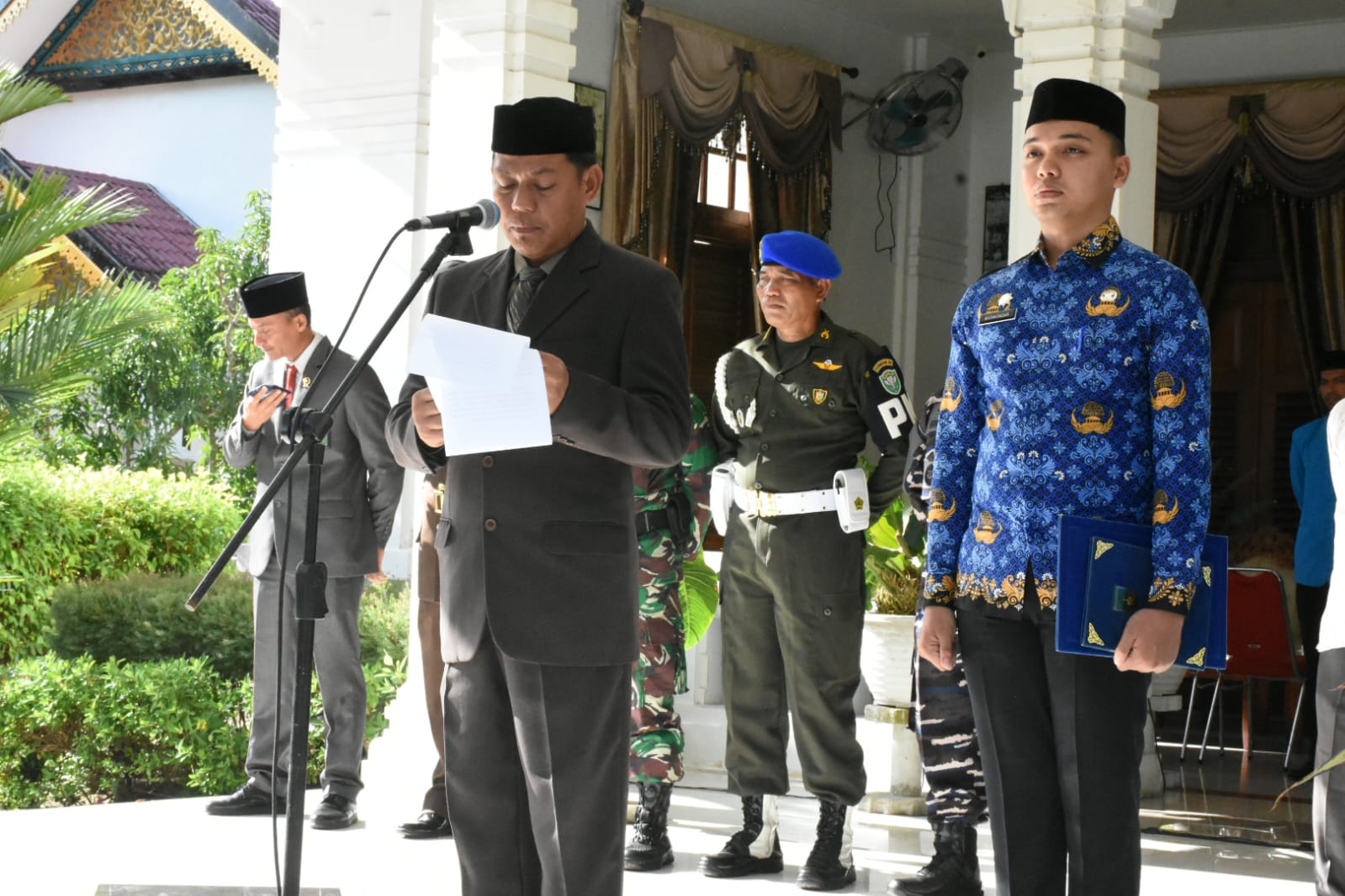 Upacara yang dipimpin oleh Pj Sekda Kota Langsa Suriyatno AP, MSP, dengan Komandan Upacara Miftahul Arifin, S.Ip, dan diikuti oleh Forkopimda, Para Asiten Pimpinan OPD, ASN, TNI, POLRI, Satpol PP dan WH, Dishub, BPBD, KNPI, Pramuka, Siswa Sekolah Menengah Pertama dan Menengah Atas dalam lingkungan Pemko Langsa.