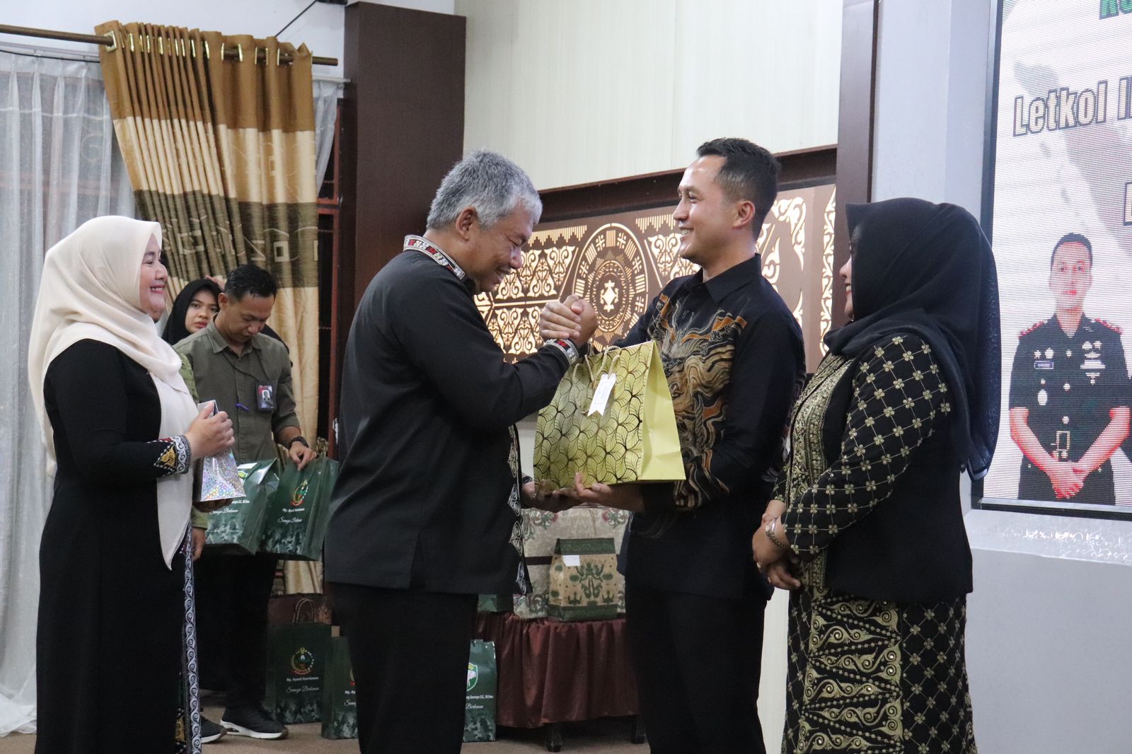 Dalam acara tersebut tampak Hadir Pj. Bupati Aceh Tengah, Subhandy, AP, M.Si, Letkol Inf Kurniawan Agung SancoyoSE.M.Han, Dandim 0106/ Aceh Tengah Pejabat Baru Letkol Inf. Raden Herman Sasmita, Kapolres Aceh Tengah, diwakili Wakapolres Aceh Tengah, Kompol Samsir, SH, Plh. Sekda Kab. Aceh Tengah, Erwin Pratama, S.STP, M.Si dan tamu undangan.