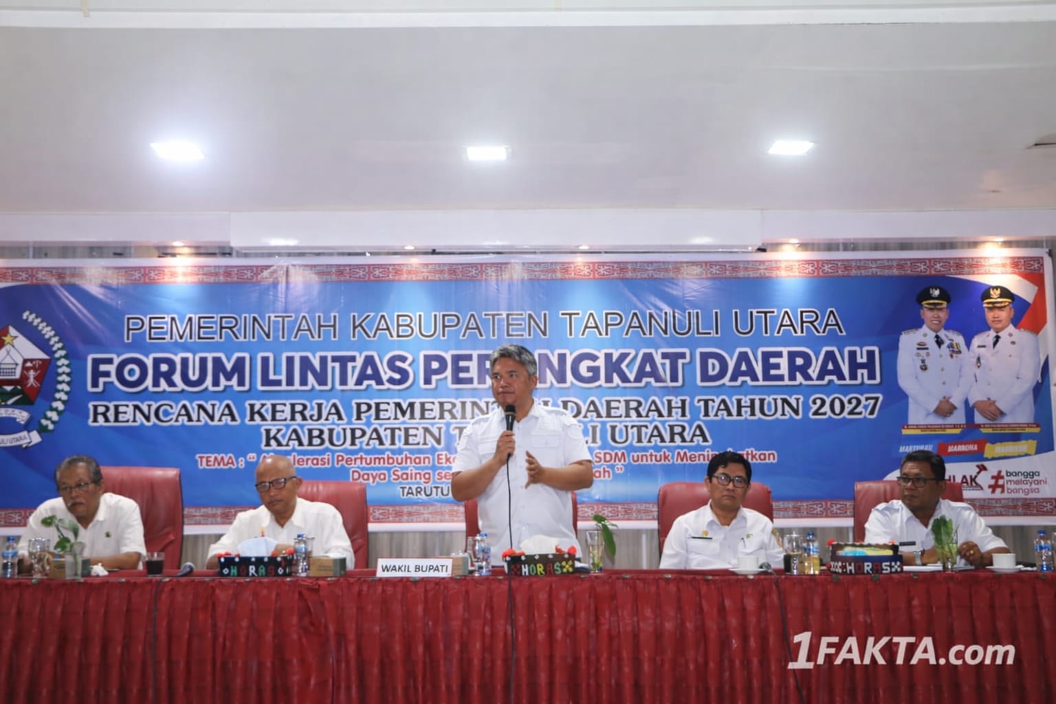 Hal tersebut ditandai dengan pelaksanaan Forum Lintas Perangkat Daerah RKPD Tahun 2027 yang secara resmi dibuka oleh Wakil Bupati Tapanuli Utara, Dr. Deni Parlindungan Lumbantoruan, M.Eng, didampingi Sekretaris Daerah Drs. Henry M.M. Sitompul, M.Si, di Aula Martua Kantor Bupati Tapanuli Utara, Tarutung, Rabu (11/3/2026).