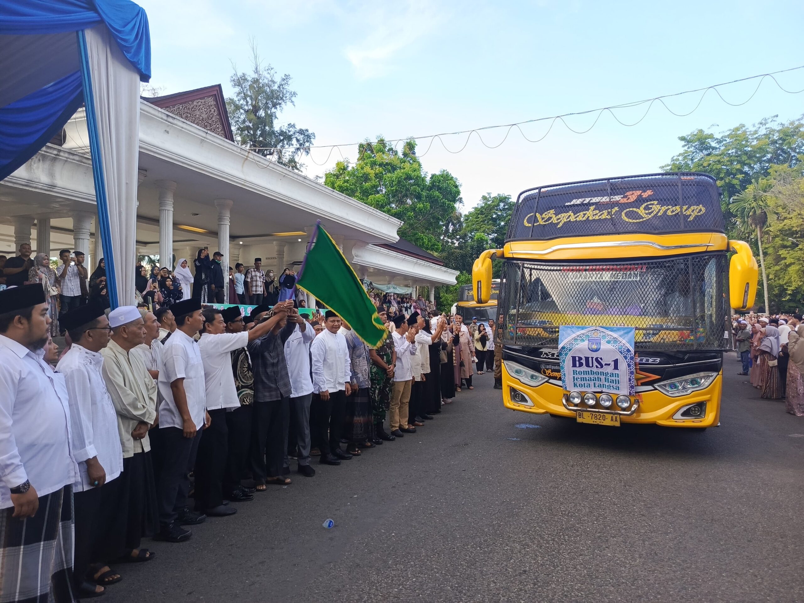 Pemerintah Kota (Pemko) Langsa lepas keberangkatan 186 Jamaah Haji Kota Langsa yang tergabung dalam Jamaah Haji Embarkasi Aceh Kloter 07 BTJ 1446 H/2024, Jum’at (23/05).