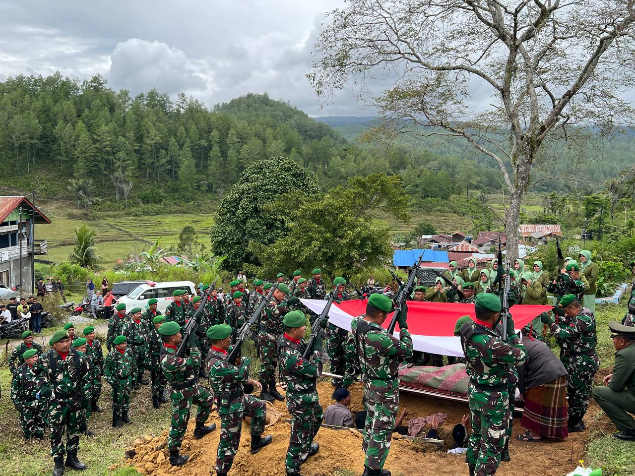 Atas nama Negara, Tentara Nasional Indonesia (TNI) dan seluruh keluarga yang ditinggalkan, kami menyampaikan bela sungkawa yang sedalam-dalamnya, dan penghargaan setinggi-tingginya disertai doa yang tulus dan ikhlas kepada almarhum. Semoga almarhum diterima di sisi Tuhan Yang Maha Esa, dan keluarga yang ditinggalkan diberikan ketabahan, kesabaran, kekuatan, bimbingan dan perlindungannya serta bisa menerima dengan berlapang dada dan teguh hati, ” pungkas Dandim”.