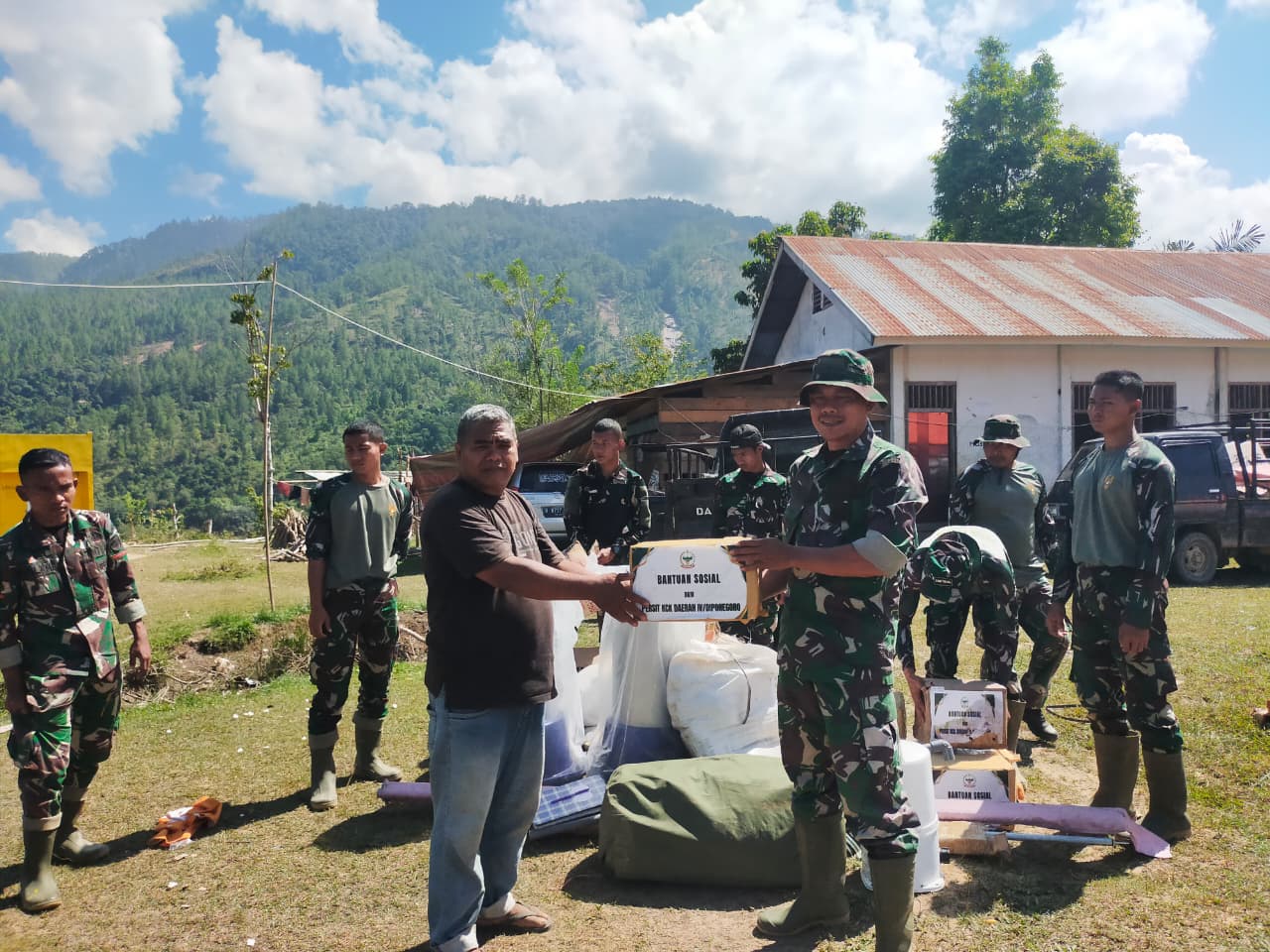 Dandim 0106/Aceh Tengah Letkol Inf Raden Herman Sasmita melalui Danramil 05 Linge Lettu Inf Mukhlis beserta anggota Yon TP 854/DK melaksanakan pemasangan 1 Set Pembersih Air Fumizu di pengungsian dan salurkan Logistik bagi masyarakat desa Delung Sekinel Kec. Linge Kab. Aceh Tengah. Selasa (13/01/26)