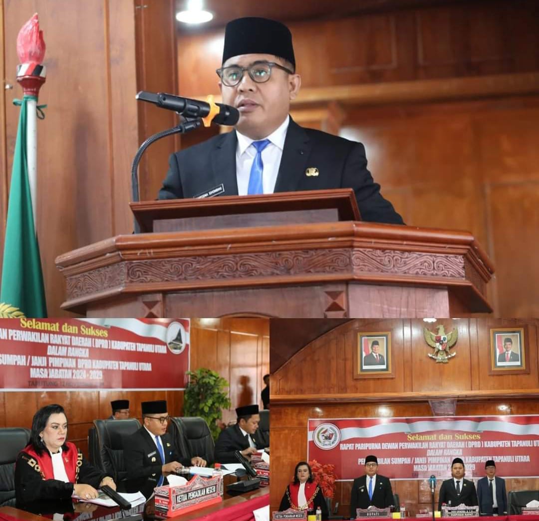 “Pimpinan DPRD merupakan amanat konstitusi, untuk itu kami berharap kepada pimpinan dan anggota DPRD Kabupaten Tapanuli Utara kiranya dapat melahirkan produk-produk legislasi yang relevan dengan kepentingan jangka panjang daerah Kabupaten Tapanuli Utara” ucap Pj. Bupati Taput