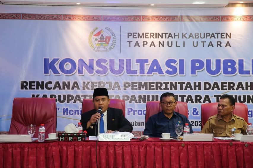 “Melalui forum Konsultasi Publik diharapkan rancangan RKPD Kabupaten Tapanuli Utara tahun 2026 dapat ditelaah dan dipertajam bersama sehingga dapat terfokus pada tema atau agenda Pembangunan Kabupaten Tapanuli Utara Tahun 2026.