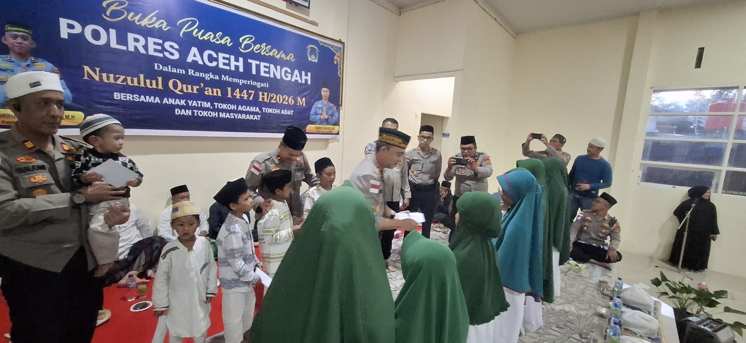 Dalam rangka memperingati Nuzulul Qur’an 1447 Hijriah / 2026 Masehi, Polres Aceh Tengah menggelar kegiatan buka puasa bersama dengan tokoh agama, tokoh adat, tokoh masyarakat serta menyantuni anak yatim/piatu di Gedung Sanika Satyawada Aspol Polres Aceh Tengah, Jumat (6/3/2026).