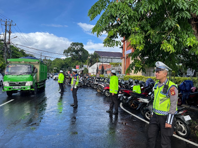 Personel Polda Bali disiagakan di setiap gereja untuk melakukan pengamanan terbuka dan tertutup, pengaturan lalu lintas, serta patroli di sekitar lokasi ibadah.
