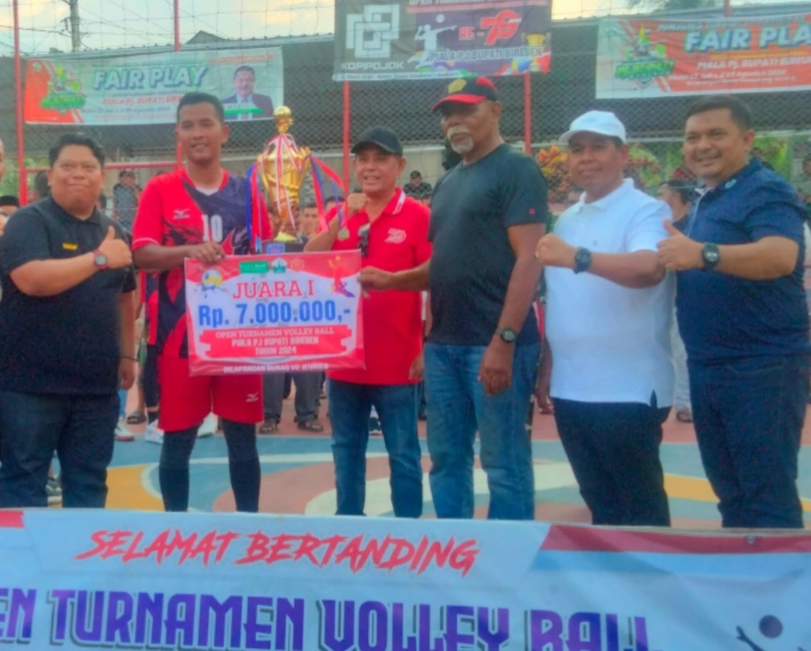 Tim Voli Peusangan VC kembali meraih kemenangan dengan mengalahkan lawannya Pandrah VC dengan skor akhir 3:1, pada laga final turnamen Bola Voli Piala Bupati Bireuen dalam rangka menyambut HUT RI ke-79 Kamis, (08/08/2024) yang berlangsung dilapangan Burak Teureubang, Gampong Janggot Seungko, Kecamatan Jeunieb Kabupaten Bireuen.